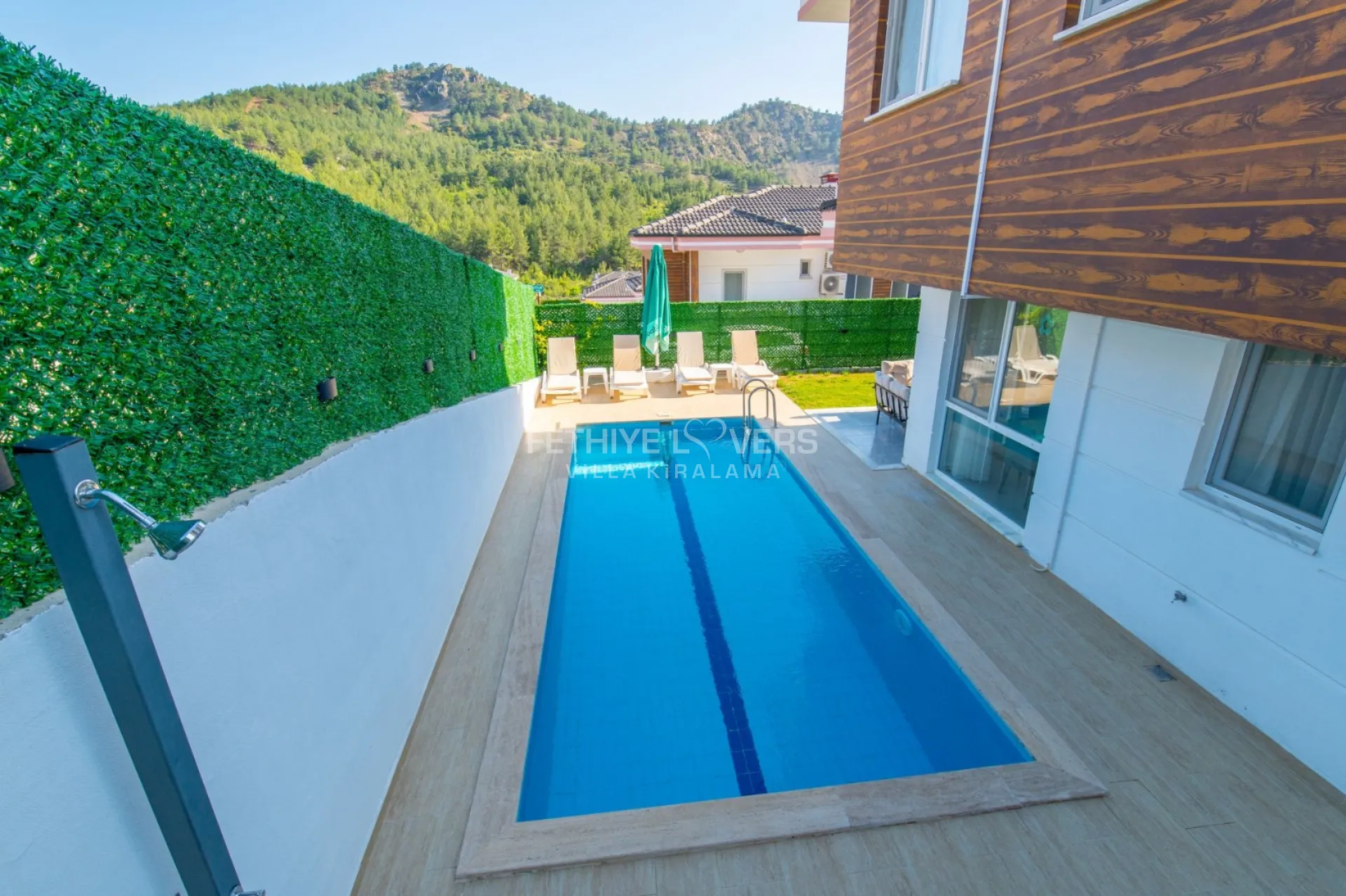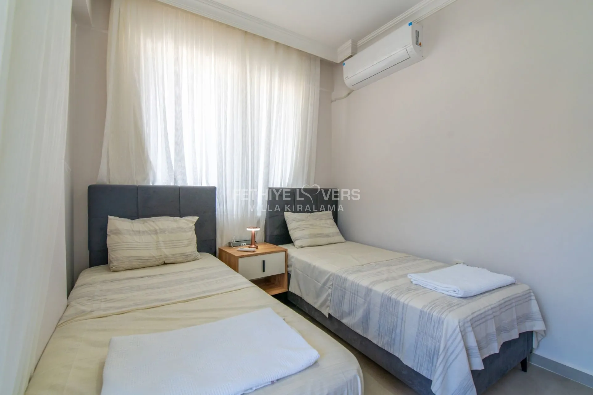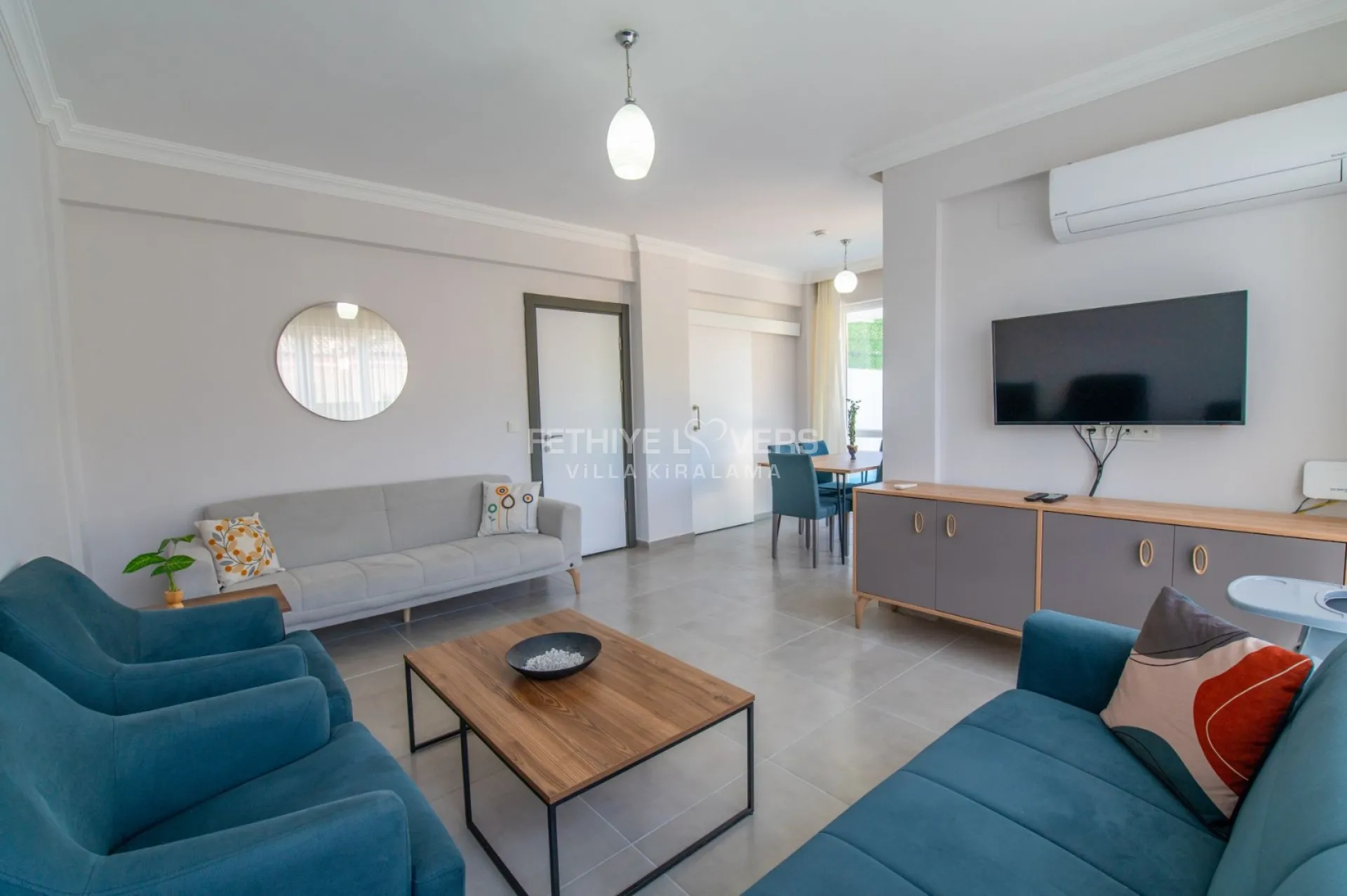 Offered by Fethiye Lovers, Villa Akkaya Dalaman is located in the Akkaya area of Dalaman and is specially designed for large family holidays and groups of friends with a capacity of 6 guests. While offering a peaceful holiday experience with its own private swimming pool, the villa also creates a social and comfortable environment with two shared pools, a children’s playground, and a cafeteria within the complex. Its proximity to the region’s most famous beaches, such as Sarıgerme Beach, İztuzu Beach, and Kayacık Beach, known for their crystal-clear sea, makes Villa Akkaya one of the most preferred options in the area. With its 120 m² spacious living area, modern activities, and on-site facilities, guests can enjoy a worry-free and comfortable holiday. We would be delighted to welcome guests who wish to spend a peaceful vacation away from the noise of the city in this unique atmosphere.