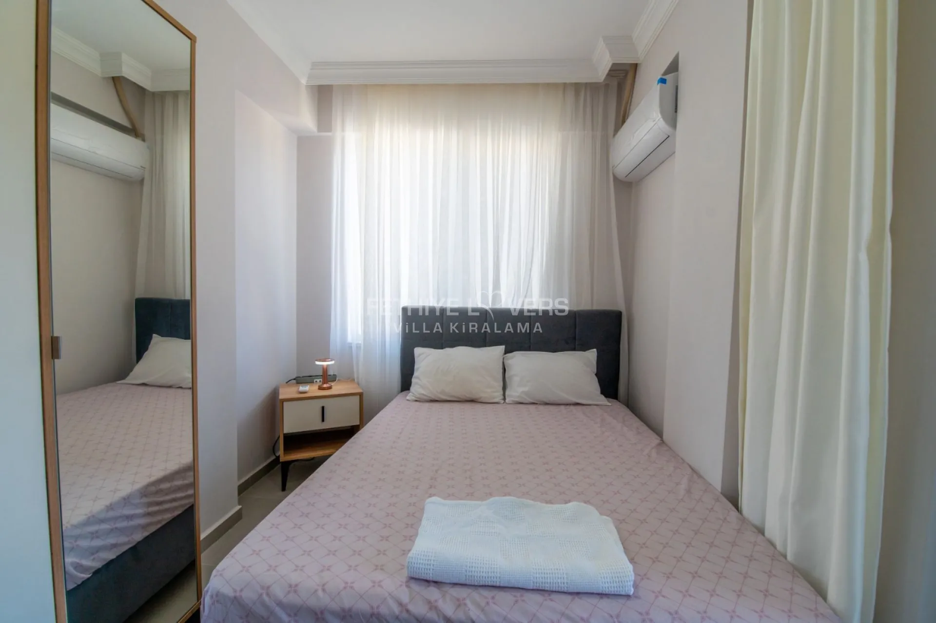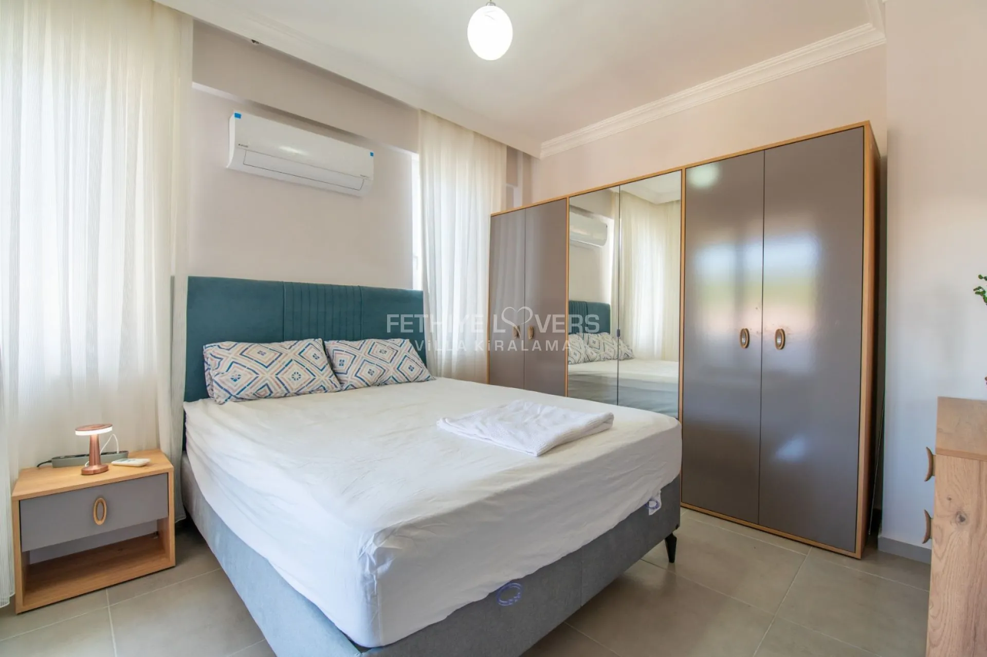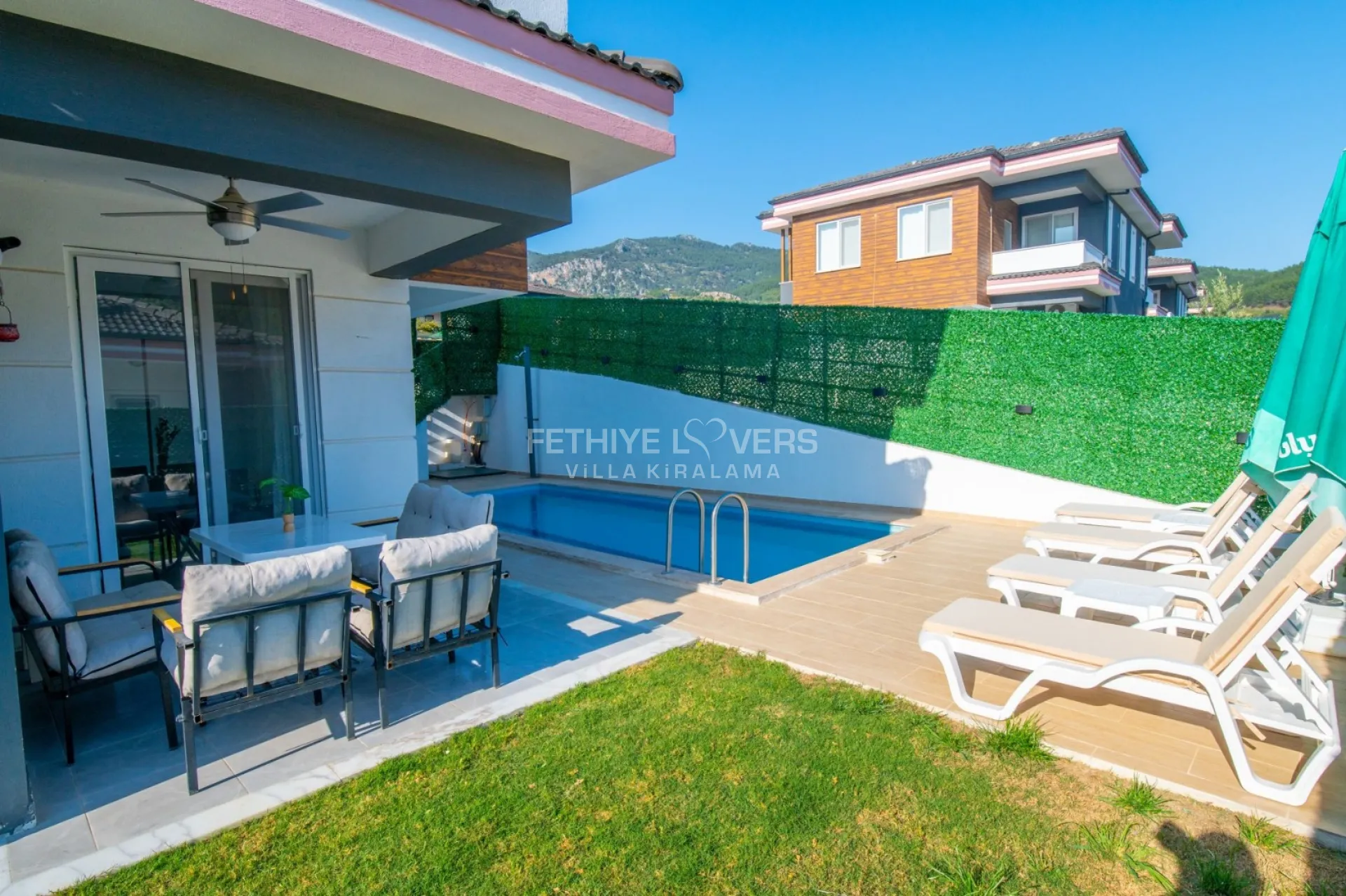 Offered by Fethiye Lovers, Villa Akkaya Dalaman is located in the Akkaya area of Dalaman and is specially designed for large family holidays and groups of friends with a capacity of 6 guests. While offering a peaceful holiday experience with its own private swimming pool, the villa also creates a social and comfortable environment with two shared pools, a children’s playground, and a cafeteria within the complex. Its proximity to the region’s most famous beaches, such as Sarıgerme Beach, İztuzu Beach, and Kayacık Beach, known for their crystal-clear sea, makes Villa Akkaya one of the most preferred options in the area. With its 120 m² spacious living area, modern activities, and on-site facilities, guests can enjoy a worry-free and comfortable holiday. We would be delighted to welcome guests who wish to spend a peaceful vacation away from the noise of the city in this unique atmosphere.