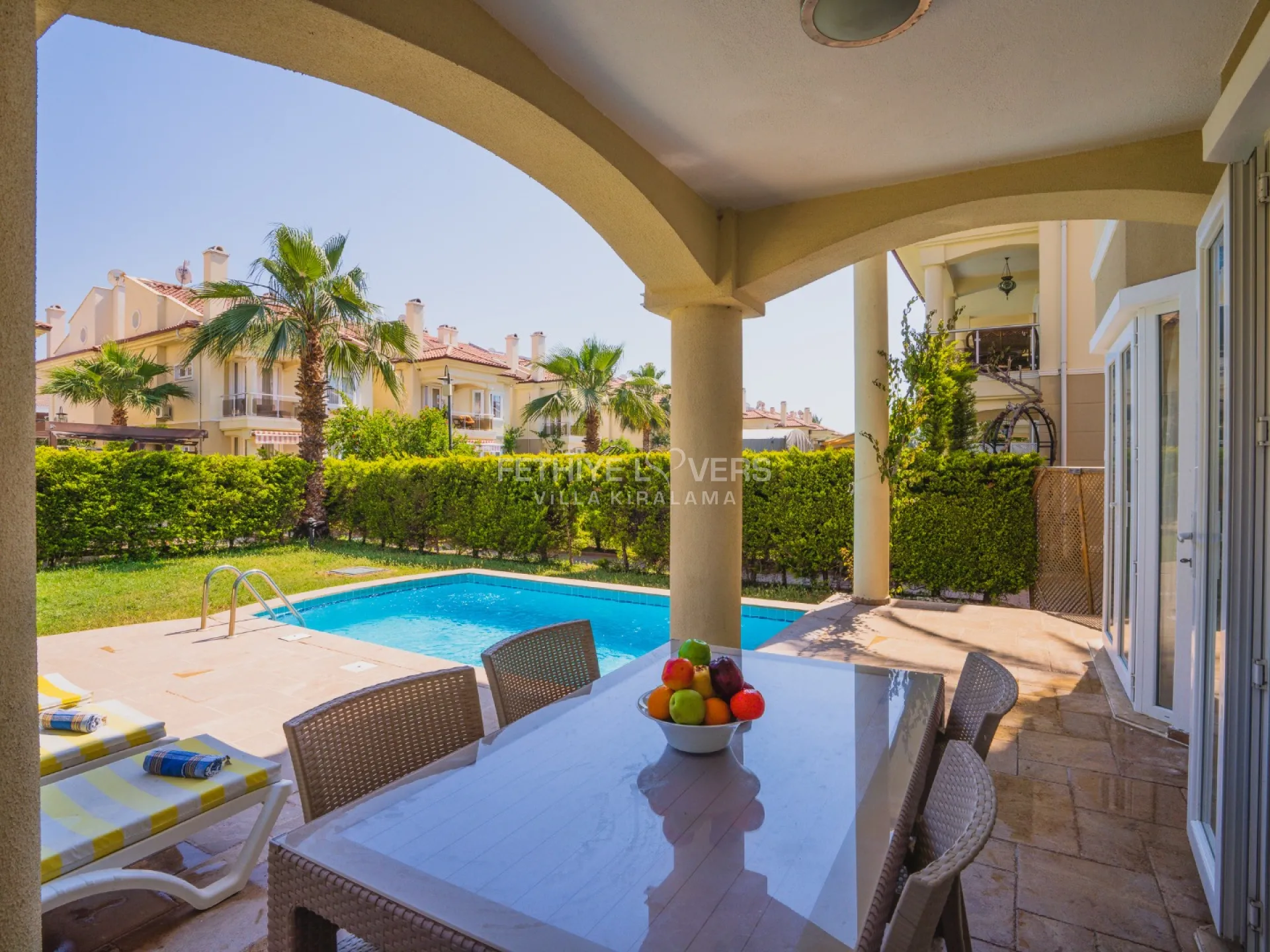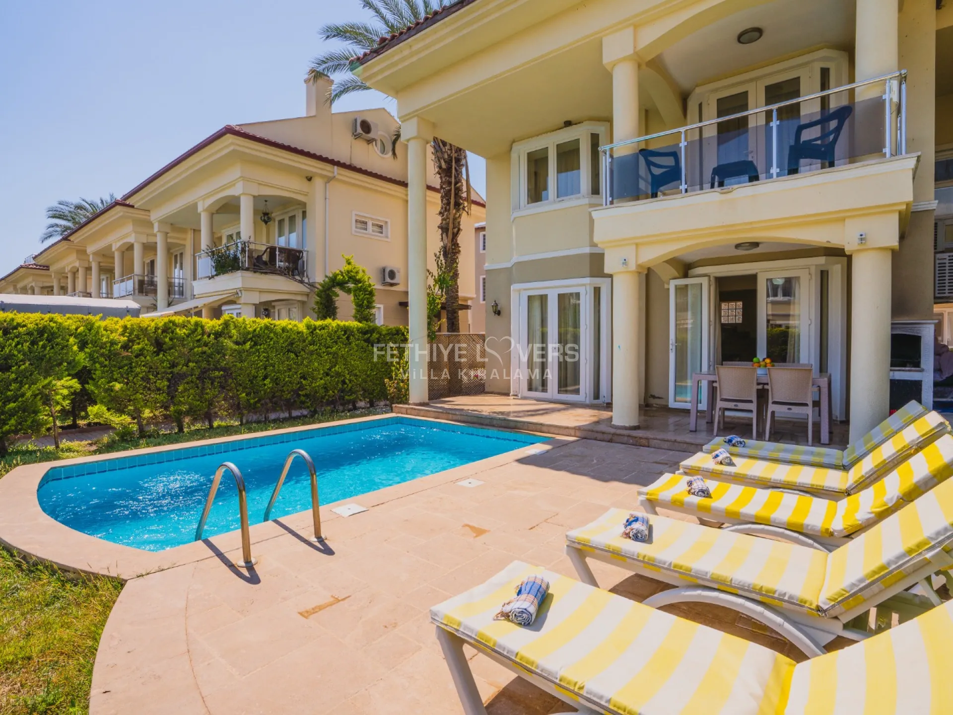 Offered with the privilege of Fethiye Lovers Villa Rental, this exclusive villa is located in one of Fethiye’s most popular holiday destinations, Çalış, close to the distinguished Çalış Plajı and in a seafront location. Situated within a residential complex, our villa combines luxury and comfort with its private swimming pool, private garden, and modern architecture.