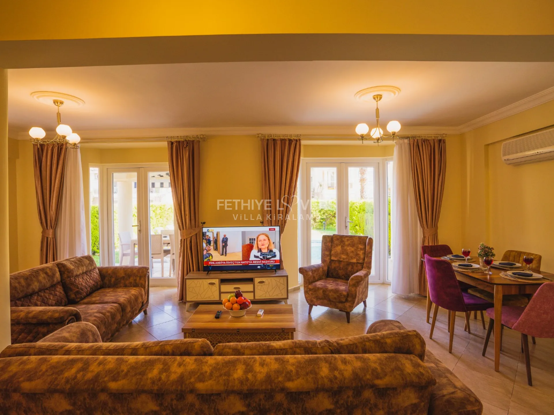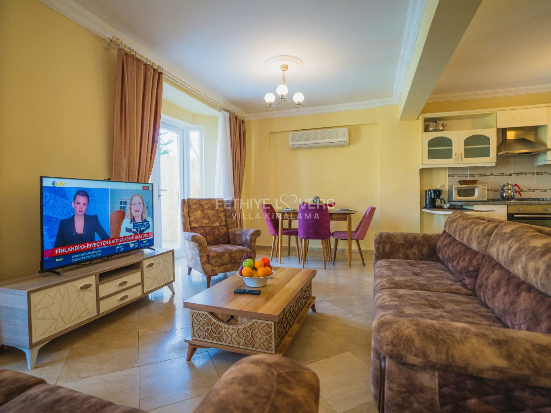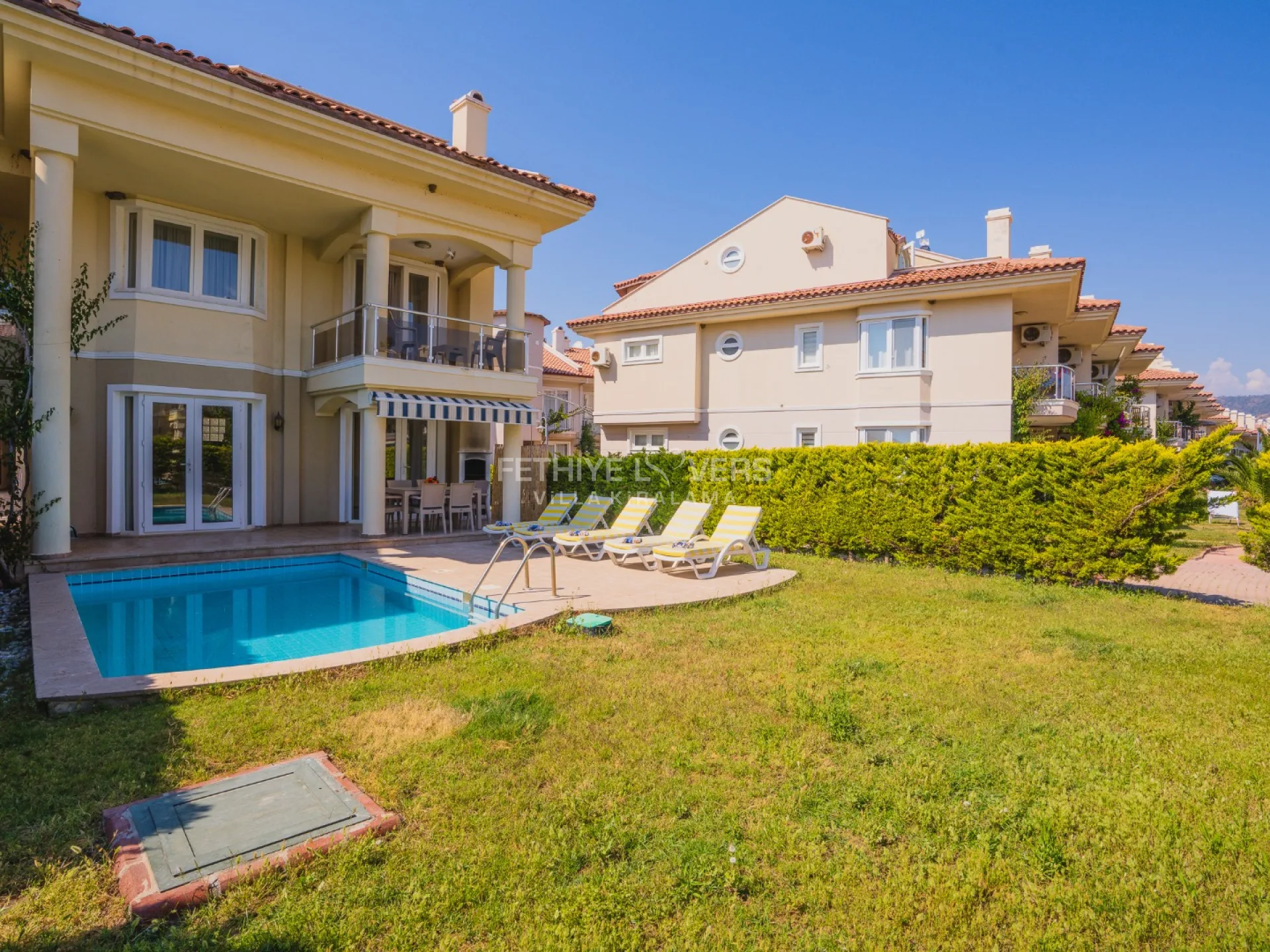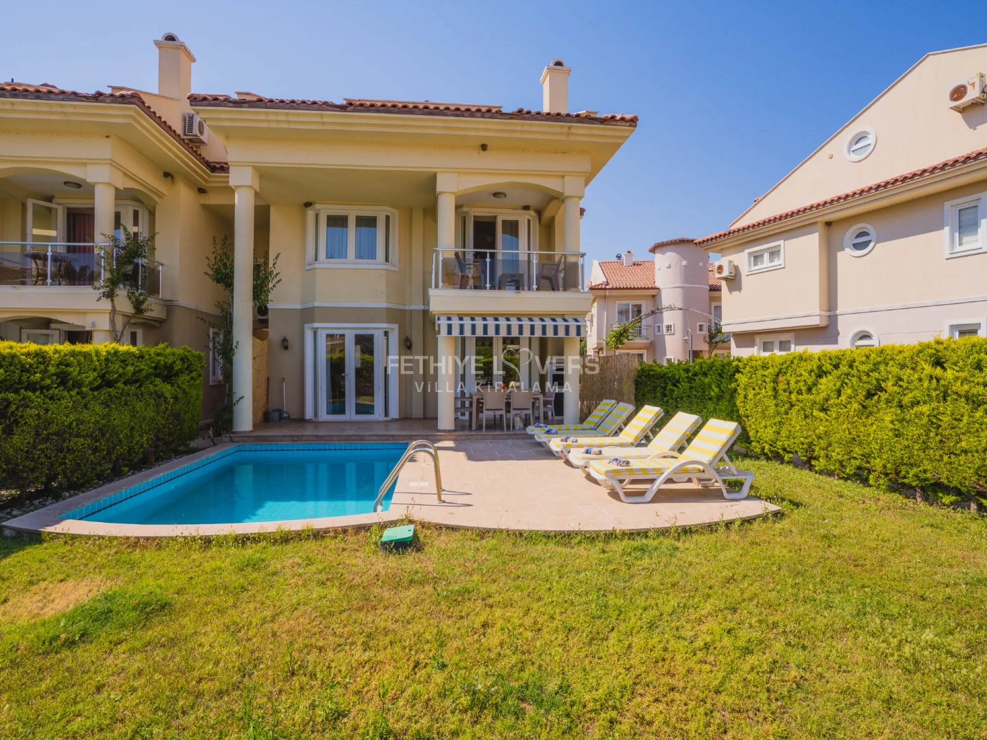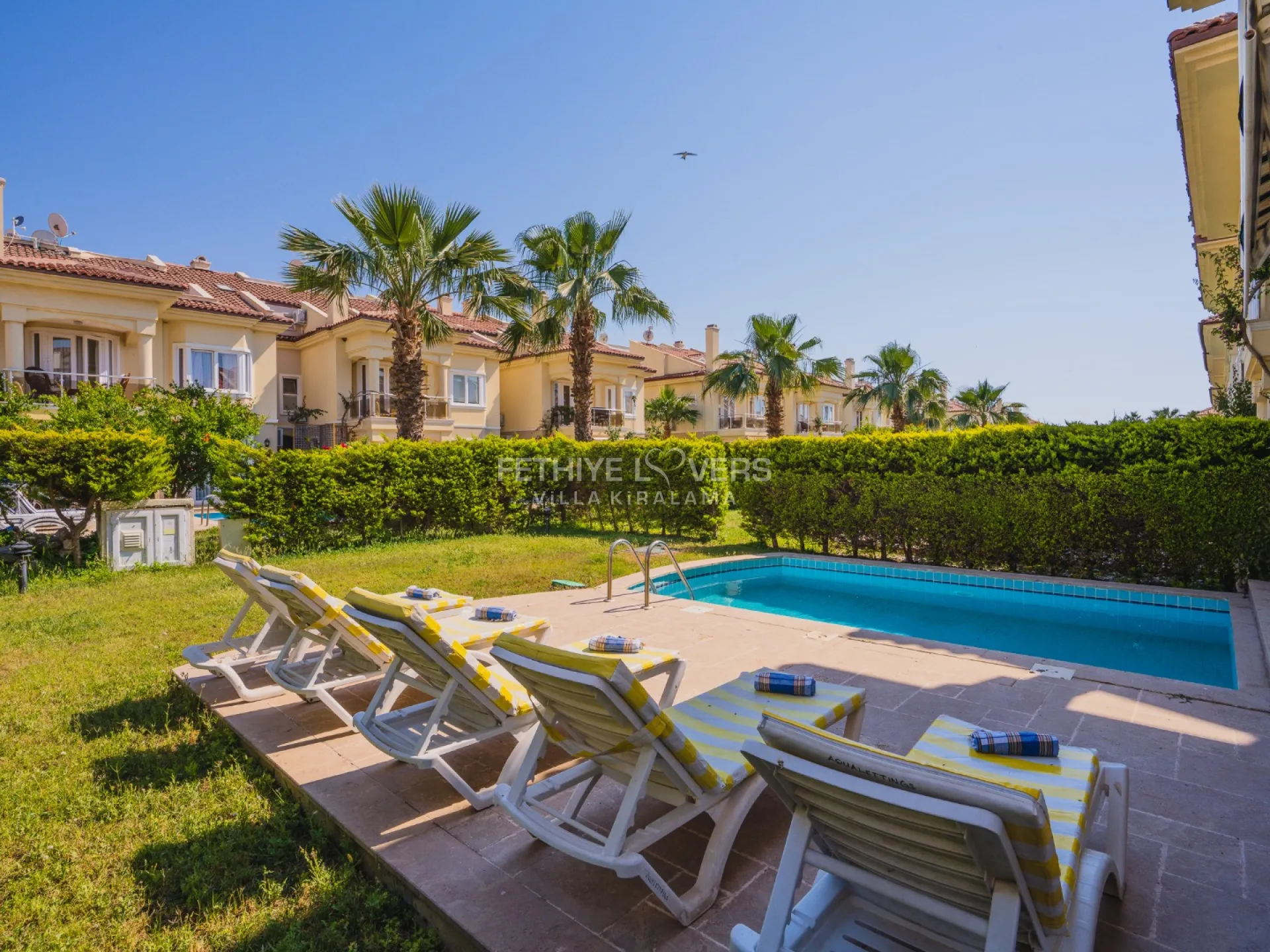 Pool and garden maintenance are performed early every morning. In case of any technical issues during the rental period, they will be resolved by the property owner. Fethiye Lovers acts only as an intermediary and cannot be held responsible for such issues but will assist in resolving them. Tenants must allow access to staff for pool, garden, or other necessary maintenance. Unless otherwise specified, the rental price includes electricity, water, gas, pool lighting, internet, and air conditioning.