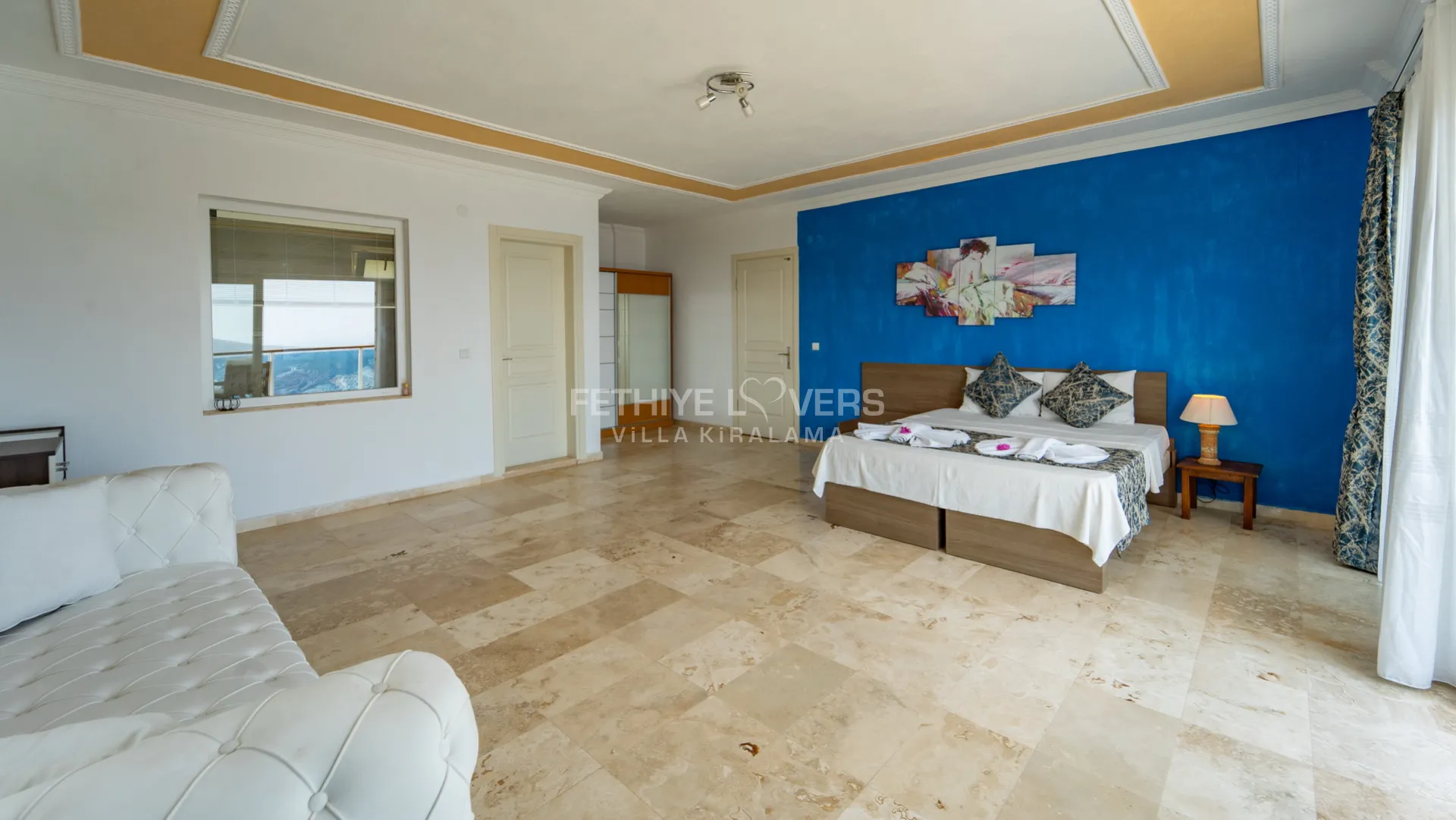 3. Yatak Odası : Çift kişilik bir adet yatak , elbise dolabı, komodin, klima, banyo ve tuvalet deniz manzaralı balkon bulunmaktadır.