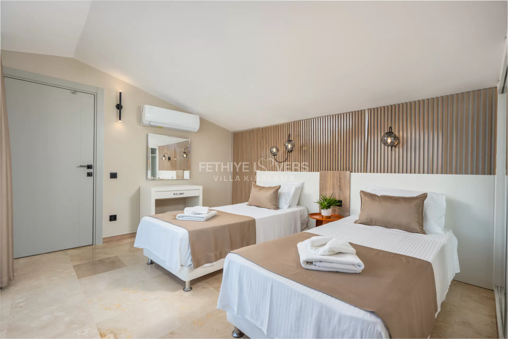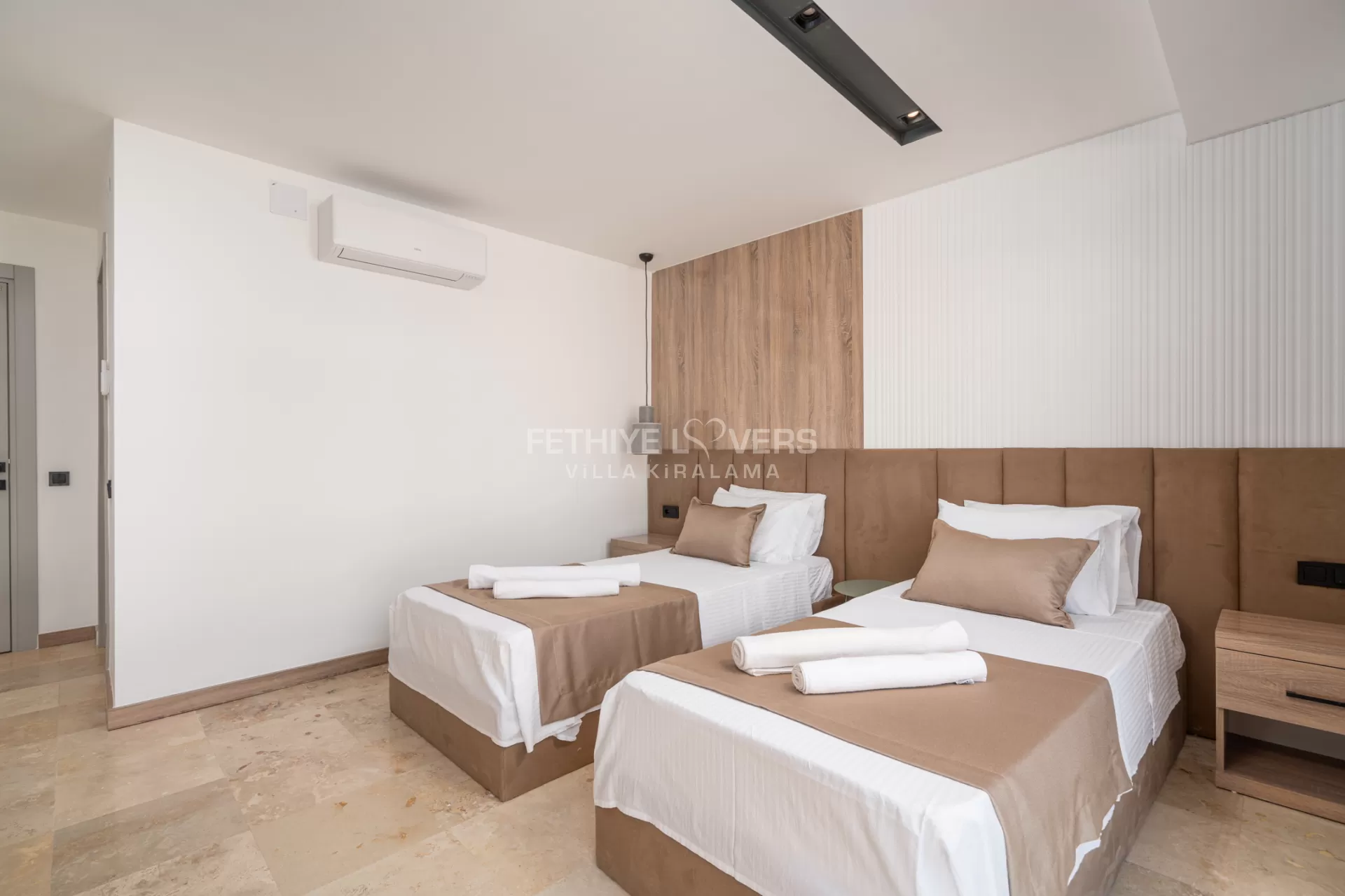 5. Yatak Odası : İki adet tek kişilik yatak ,elbise dolabı, komodin, klima, özel banyo ve tuvalet bulunmaktadır. Deniz manzaralıdır