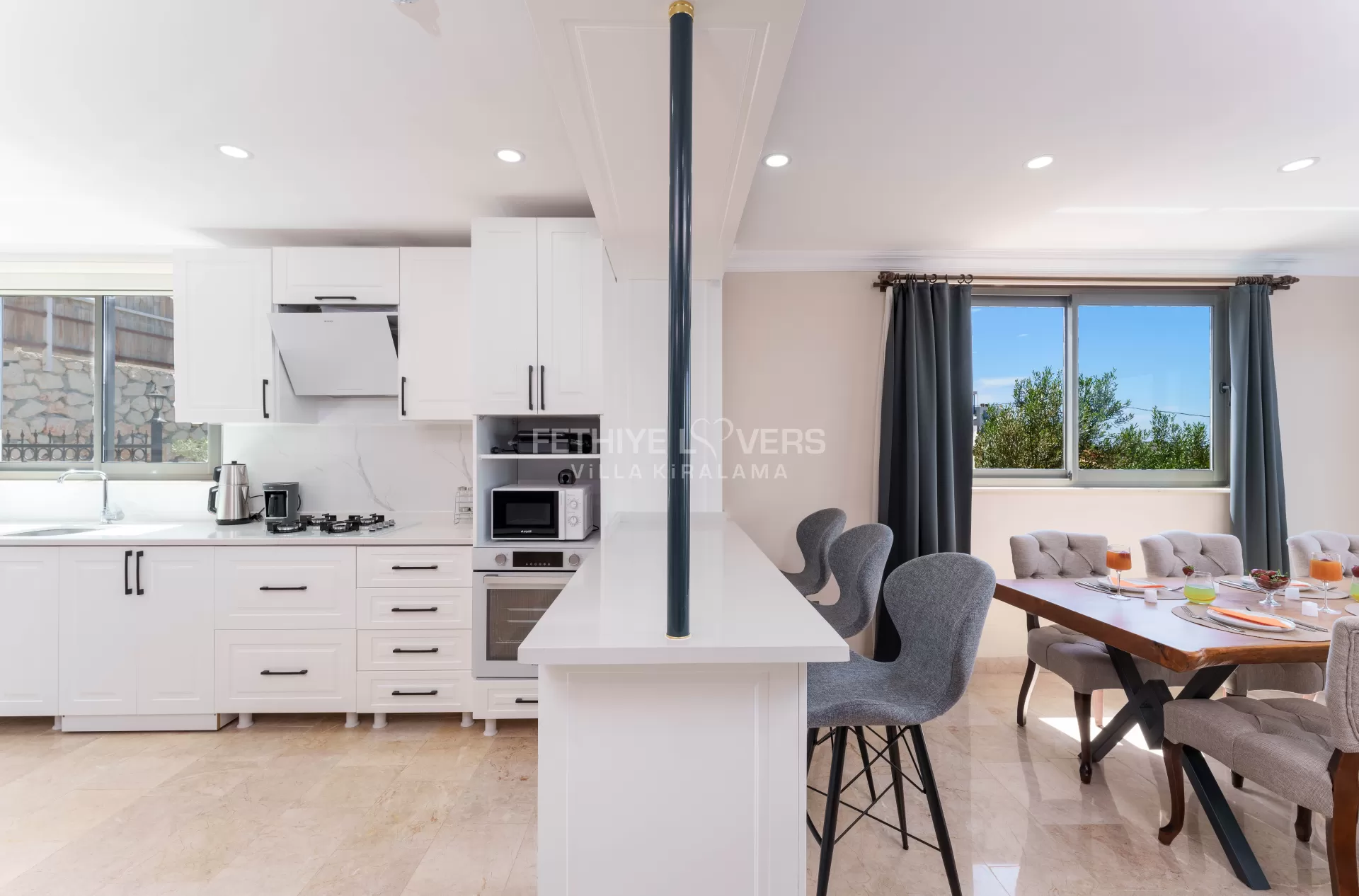 Mutfak : Tam donanımlı modern Amerikan mutfak içerisinde buzdolabı, bulaşık makinesi, fırın, ocak, mikrodalga fırın, tost makinası, elektrikli su ısıtıcı, yemek masası, yemek takımları, çatal ve bıçak takımları, tencere ve tava takımları ve bardaklar bulunmaktadır.