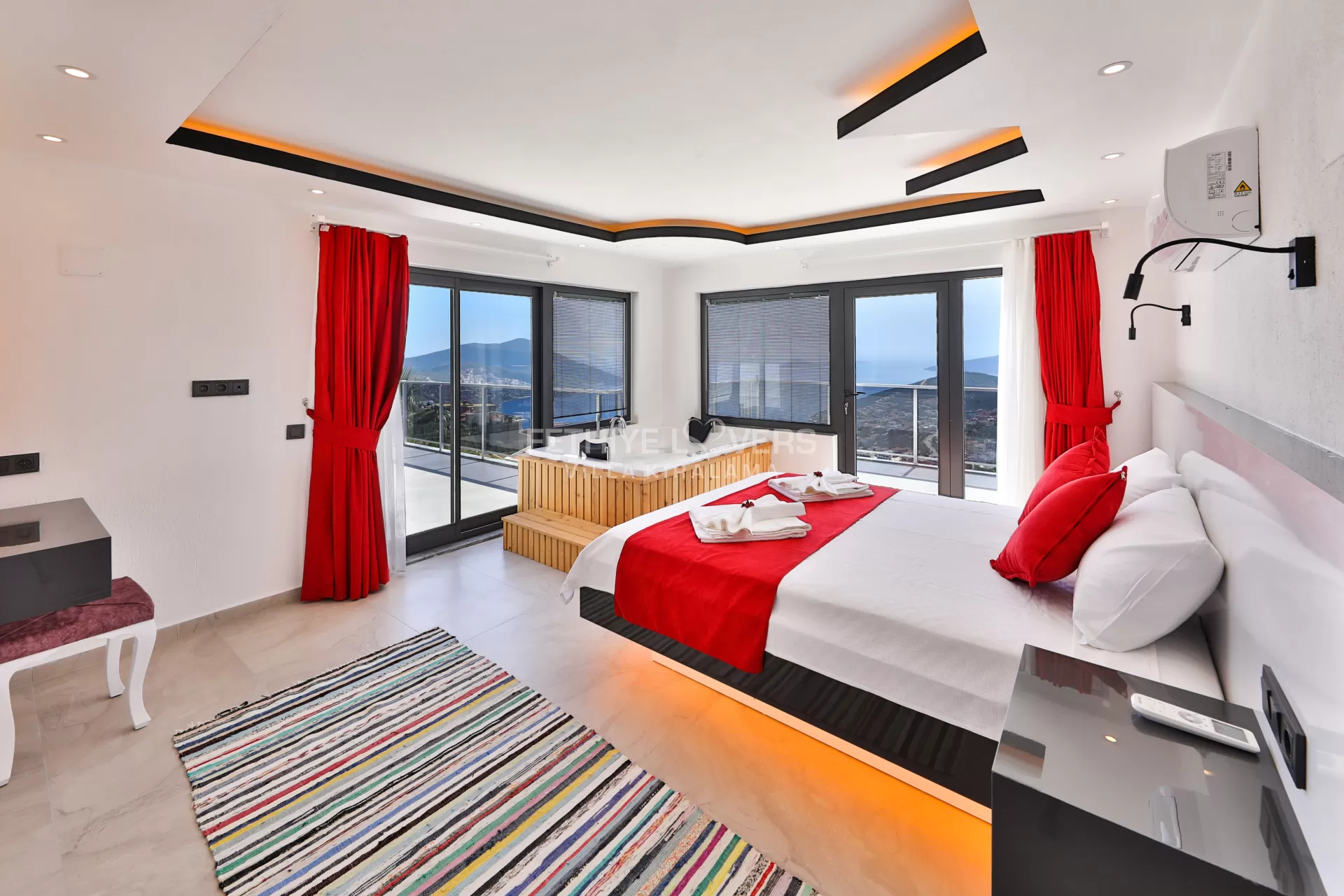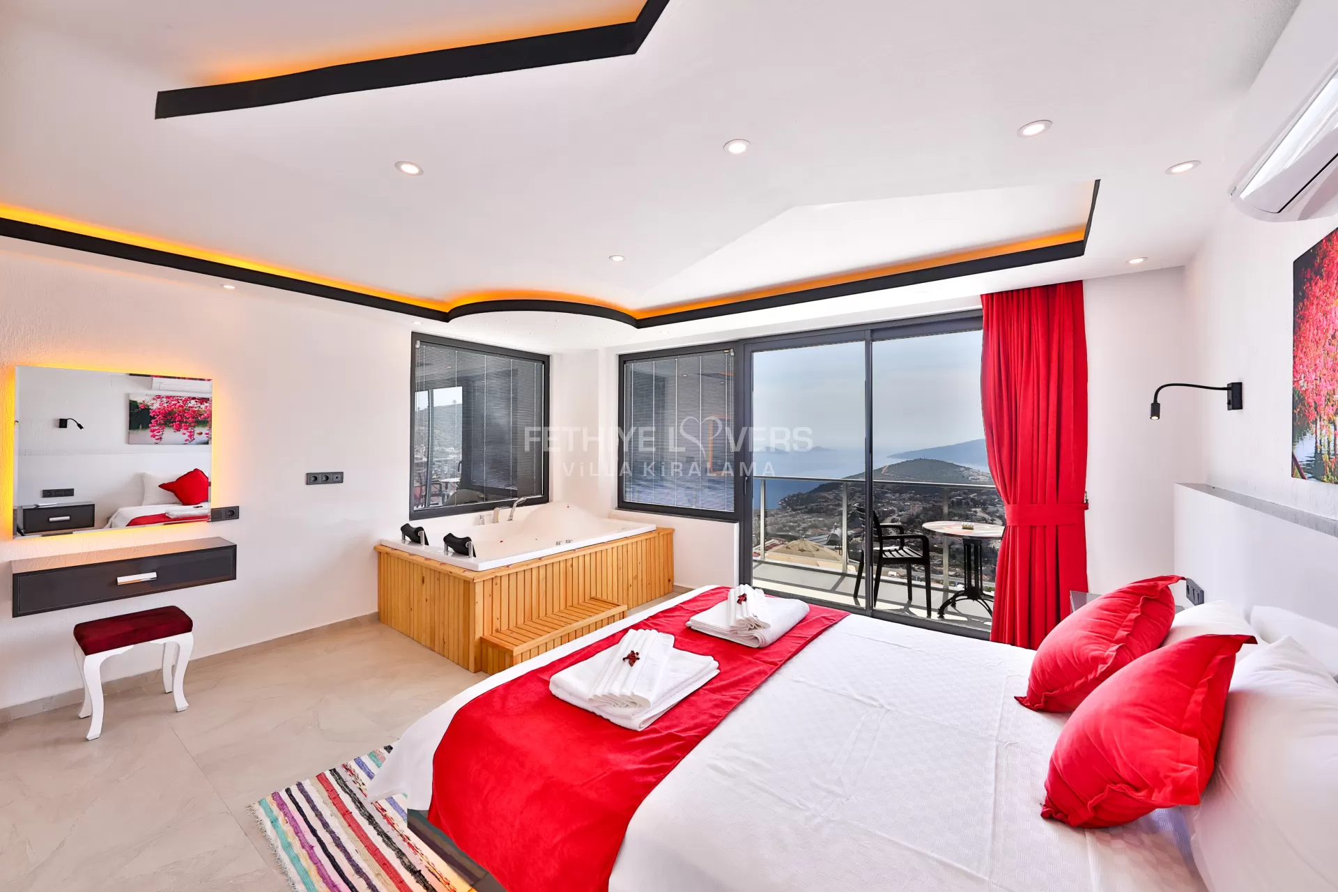 4. Yatak Odası: Bir adet çift kişilik yatak, jakuzi, elbise dolabı, komodin, makyaj masası, klima ve TV yer almaktadır. Özel banyo ve tuvalet bulunmaktadır.