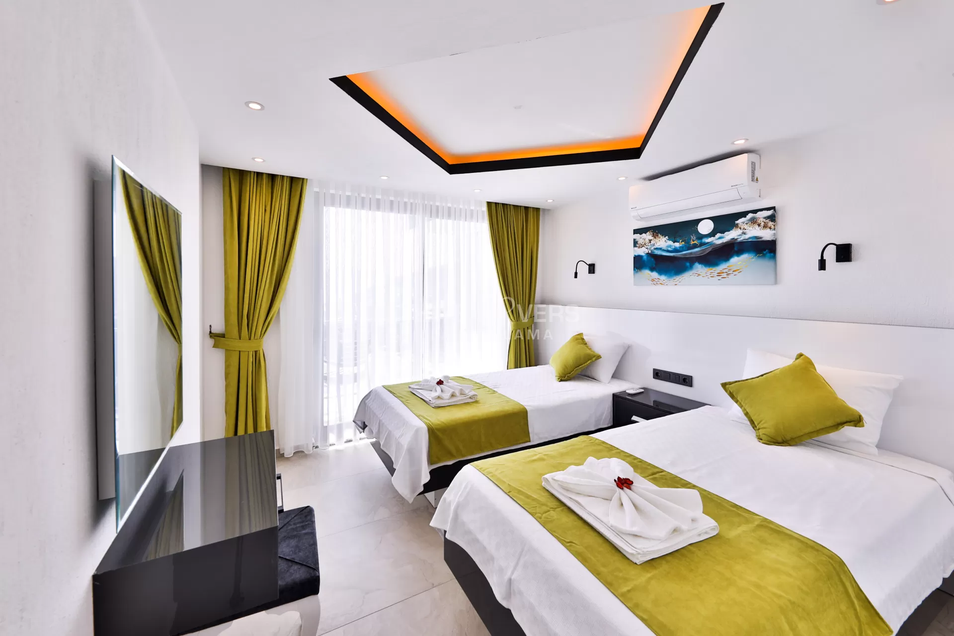2. Yatak Odası: İki adet tek kişilik yatak, elbise dolabı, komodin, makyaj masası, klima yer almaktadır. Özel banyo ve tuvalet bulunmaktadır.