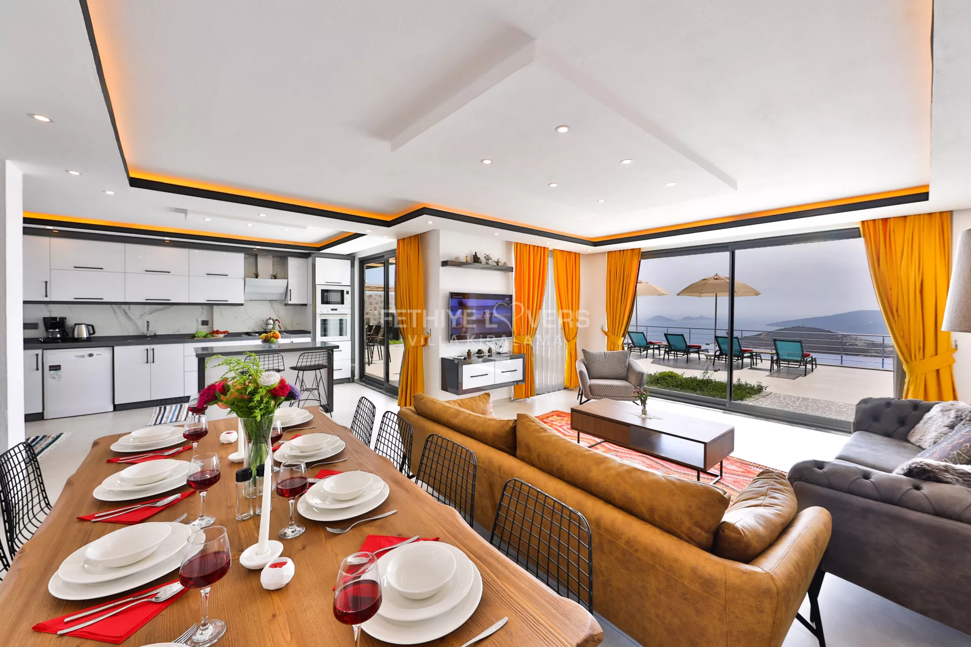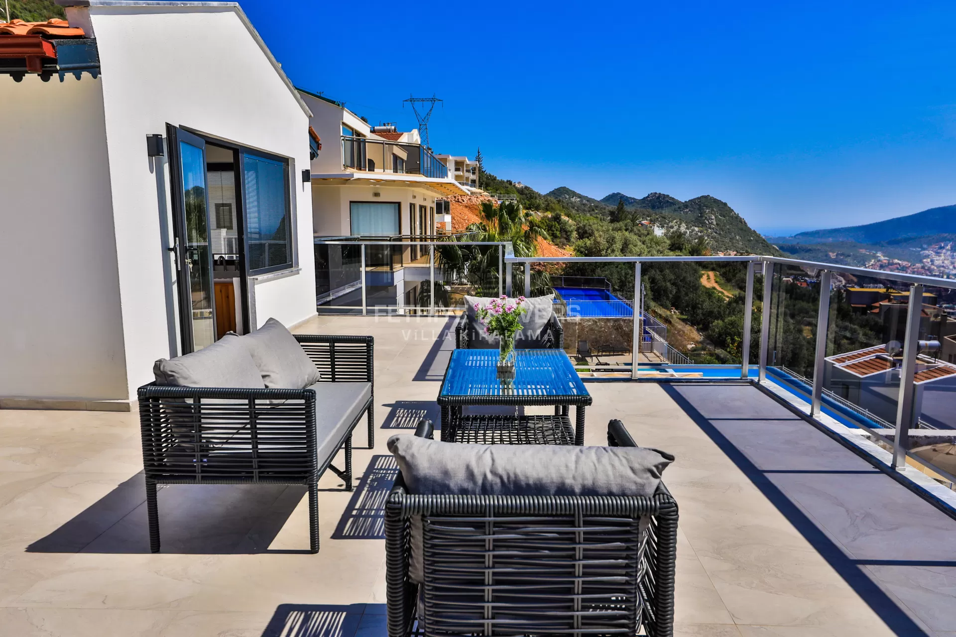 Villa July, Kalkan Kızıltaş Deniz Manzaralı Lüks Kalabalık Aile Villası, Kalkan Merkeze yakın Kızıltaş bölgesinde yer alan 5 yatak odalı ile 10 kişilik kapasiteye sahip kiralık kalabalık aile villadır. Muhteşem deniz ve adalar manzarasına sahip villamızda Akdeniz mavisine uyanıp gün boyunca bu muhteşem manzara eşliğinde dinlenerek tatilinizin keyfini çıkarabilirsiniz. Modern ve lüks iç ve dış tasarımı, herkes için yeterli özel alan sunarak, konforunuzu en üst seviyede tutmayı hedefliyor. Keyifli sohbetler edebileceğiniz havuz terasımızda şehrin gürültüsünden ve kalabalığın yorulan sizler için doğanın tüm sessizliğine ve gökyüzünün muhteşem gece ve gündüz manzarasına sahip bu villamızda yılın tüm yorgunluğunu atabilirsiniz.