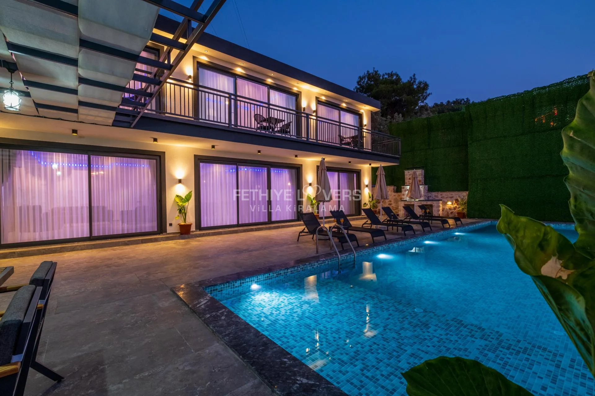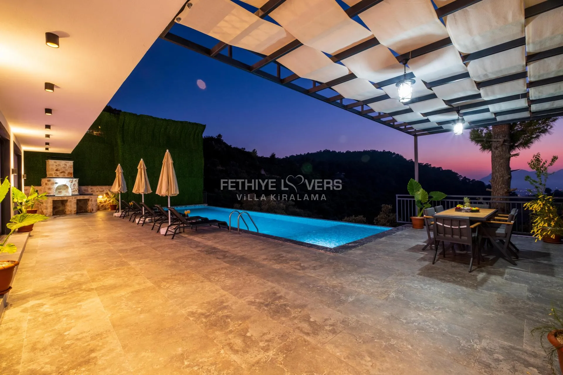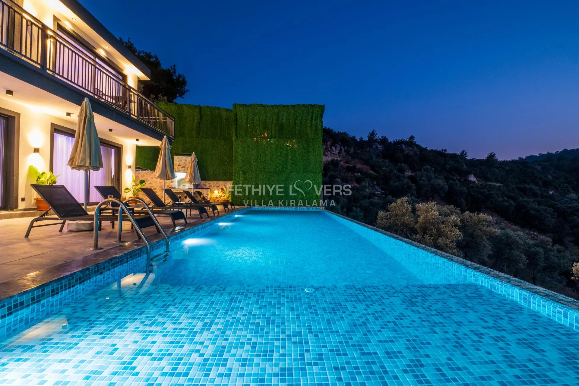 Kalkan'a bağlı, 2000 yıllık bir geçmişe sahip bir zamanlar Patara Antik Kenti yaşayanlarının yazlık olarak kullandığı, bağları ile ünlenmiş Üzümlü köyünde yer almaktadır. 4 yatak odalı ve 8 kişi kapasiteli bir kalabalık aile villamızdır. Modern ve lüks iç ve dış tasarımı, herkes için yeterli özel alan sunarak, konforunuzu en üst seviyede tutmayı hedefliyor. Keyifli sohbetler edebileceğiniz havuz terasımızda şehrin gürültüsünden ve kalabalığın yorulan sizler için doğanın tüm sessizliğine ve gökyüzünün muhteşem gece ve gündüz manzarasına sahip bu villamızda yılın tüm yorgunluğunu atabilirsiniz. Ayrıca, küçük misafirlerimiz için bebek yatağı da mevcuttur. Misafirler, villanın bahçesindeki mangal alanında keyifli barbekü partileri düzenleyebilirler. Masa tenisi ve Langırt gibi aktivitelerle ailecek birlikte vakit geçirebilirsiniz.