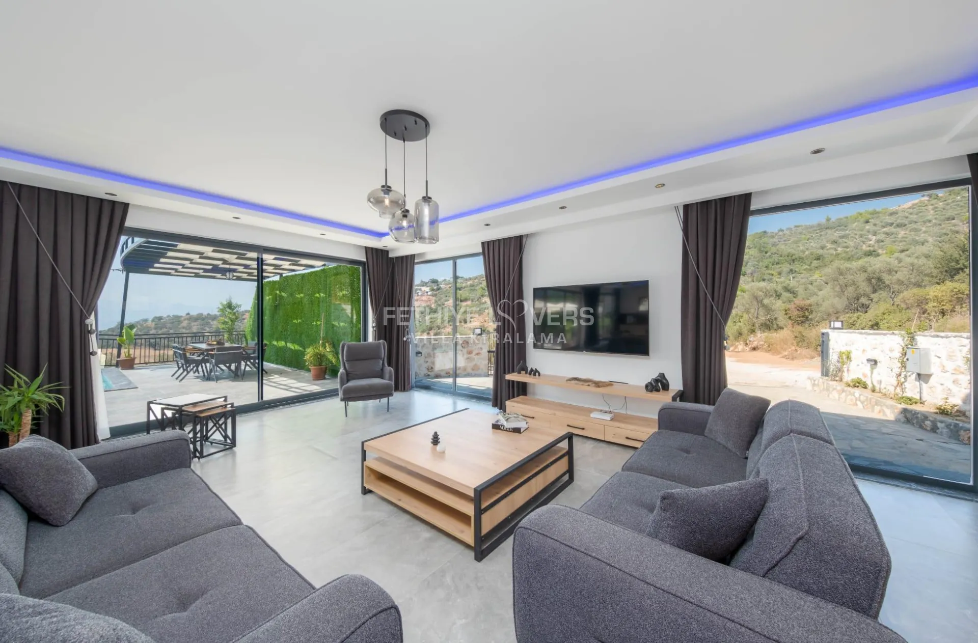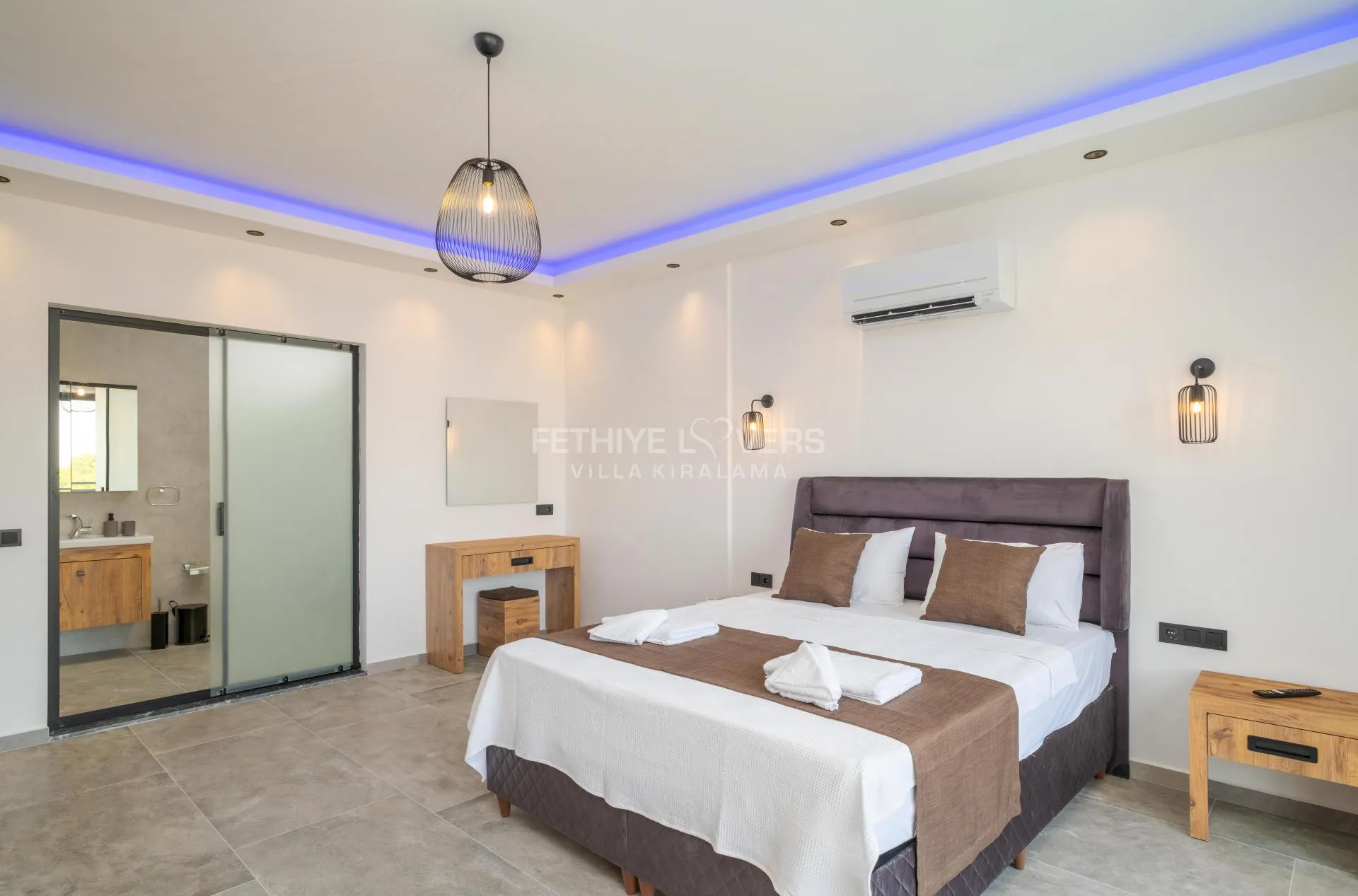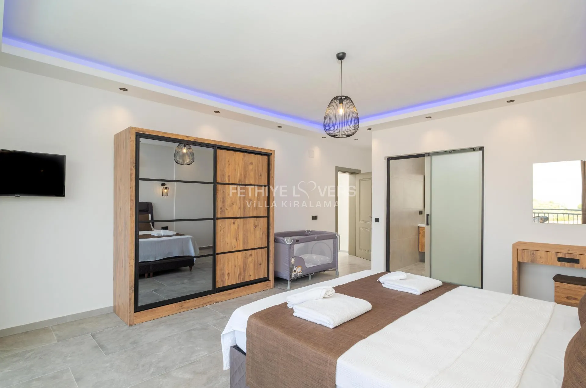 Kalkan'a bağlı, 2000 yıllık bir geçmişe sahip bir zamanlar Patara Antik Kenti yaşayanlarının yazlık olarak kullandığı, bağları ile ünlenmiş Üzümlü köyünde yer almaktadır. 4 yatak odalı ve 8 kişi kapasiteli bir kalabalık aile villamızdır. Modern ve lüks iç ve dış tasarımı, herkes için yeterli özel alan sunarak, konforunuzu en üst seviyede tutmayı hedefliyor. Keyifli sohbetler edebileceğiniz havuz terasımızda şehrin gürültüsünden ve kalabalığın yorulan sizler için doğanın tüm sessizliğine ve gökyüzünün muhteşem gece ve gündüz manzarasına sahip bu villamızda yılın tüm yorgunluğunu atabilirsiniz. Ayrıca, küçük misafirlerimiz için bebek yatağı da mevcuttur. Misafirler, villanın bahçesindeki mangal alanında keyifli barbekü partileri düzenleyebilirler. Masa tenisi ve Langırt gibi aktivitelerle ailecek birlikte vakit geçirebilirsiniz.