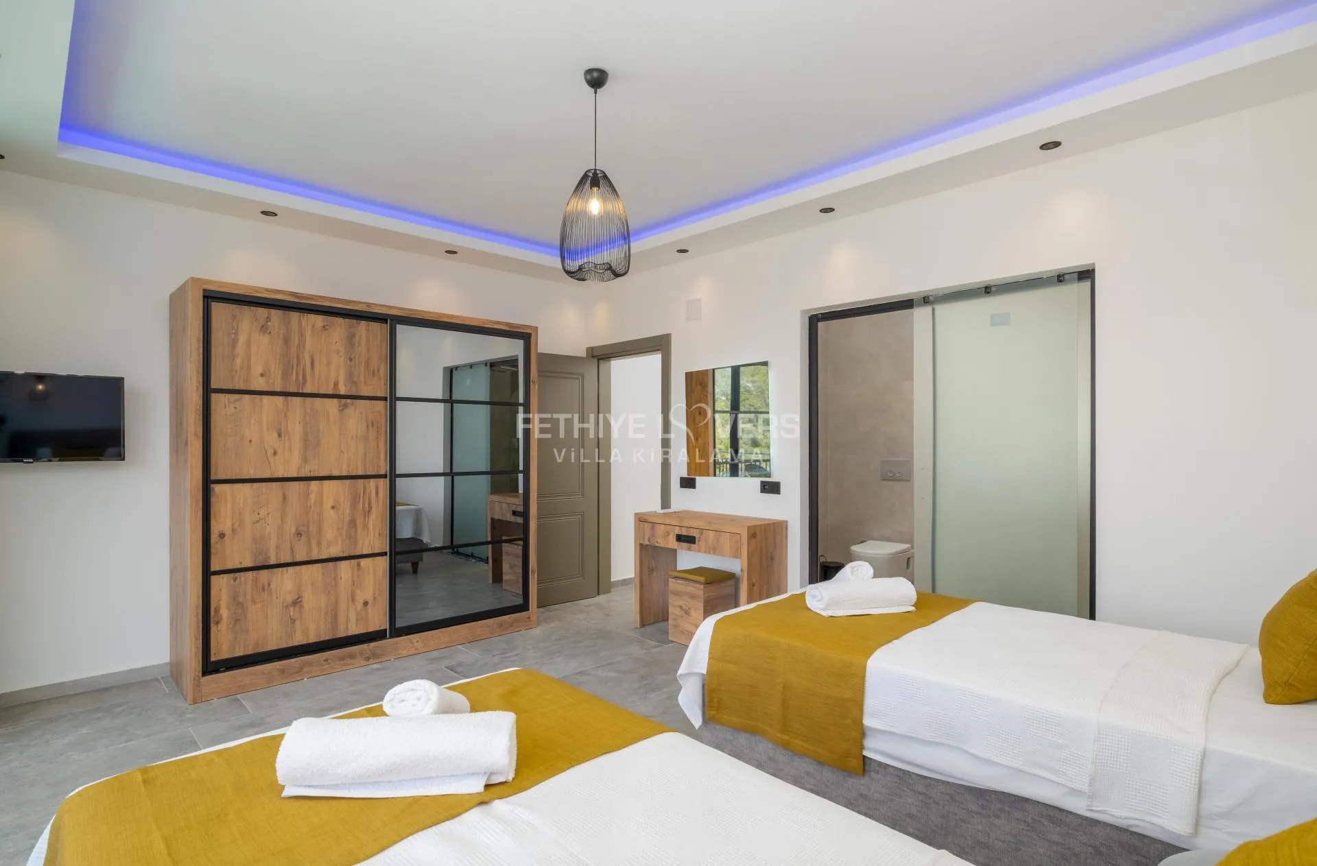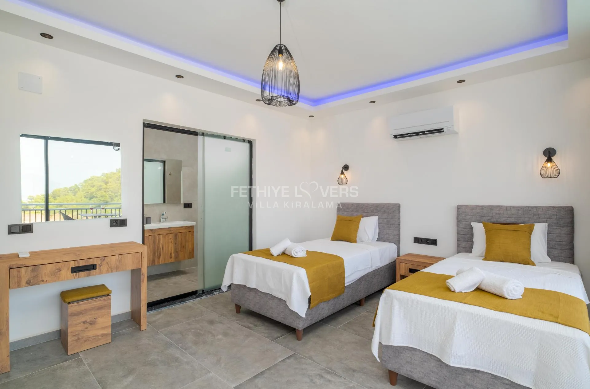 2. Yatak Odası : Tek kişilik iki adet yatak, elbise dolabı, komodin, klima, özel banyo ve tuvalet bulunmaktadır. +1 katlanabilir Yatak